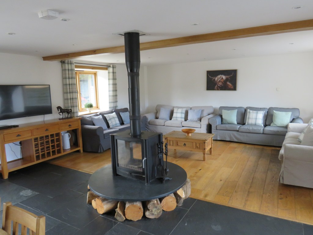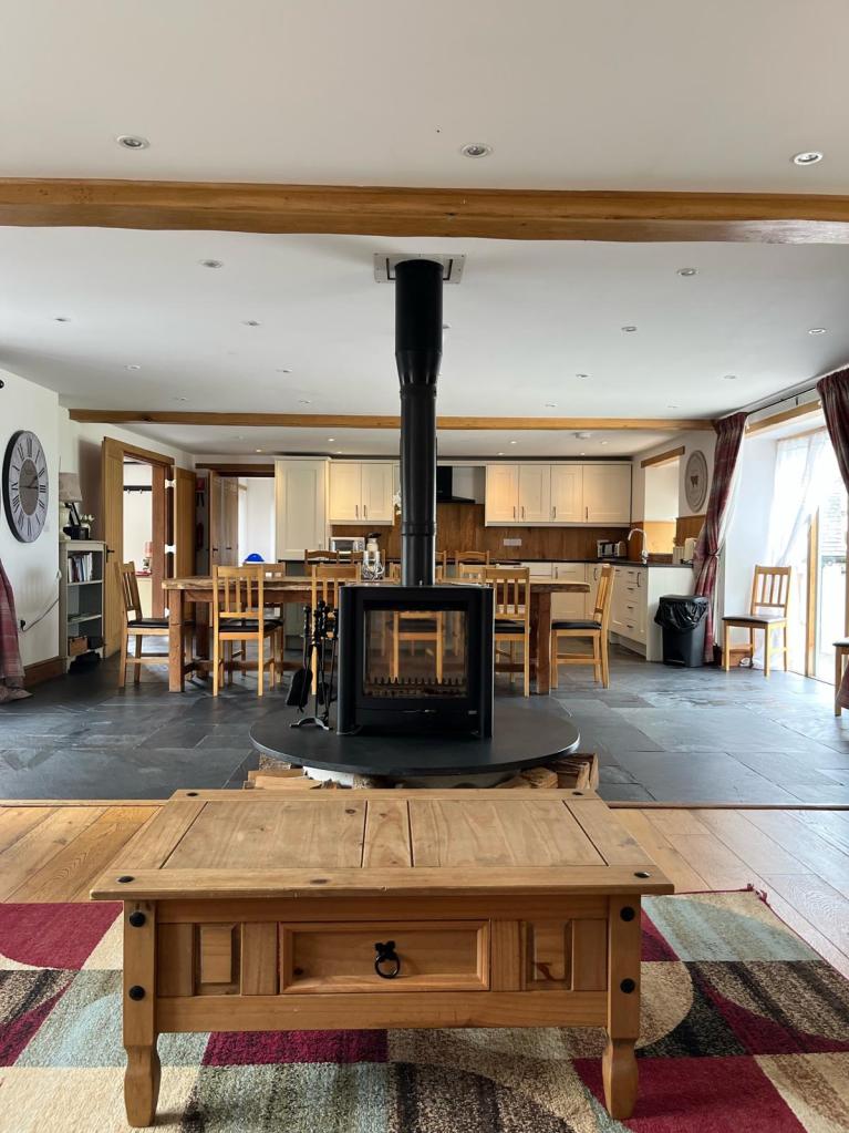 Entering the property leads you to the spacious and elegant open-plan lounge/kitchen/diner. The welcoming and stylish lounge is a perfect place for relaxation, with TV/DVD, a central raised wood burner (logs included) and doors leading out to patio with access to hot tub. The bright and cheerful dining area is ideally situated.